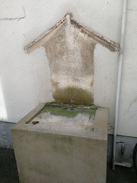 路地を入ってすぐに、民家の壁に跡だけが残っていた。