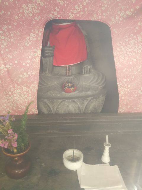 扉は鍵がかかっており開けられず、すりガラス越しに写真を撮ったが、御簾でお地蔵さんのお顔は拝見できず残念だ。
