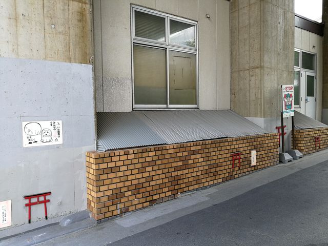南海本線高架下、粉浜作業指導所付近。周囲と少し色の違うトタン板のところに以前お堂があった。