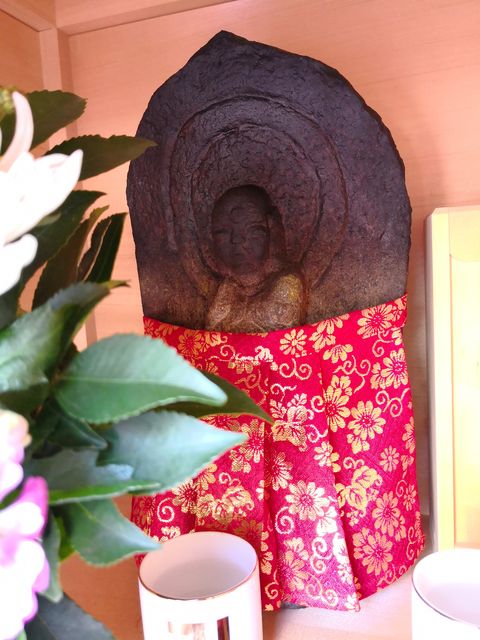 お堂の真新しさに比べて、お地蔵さんは古くからある様子で、肩をすぼめたようにみえる姿が可愛らしい。