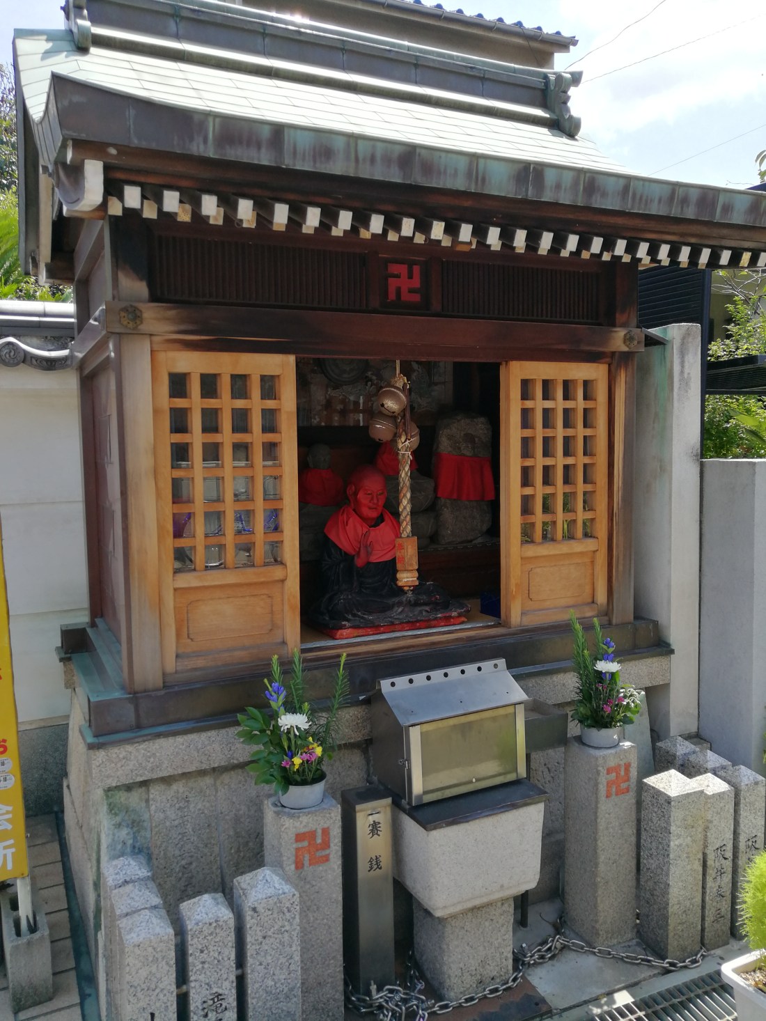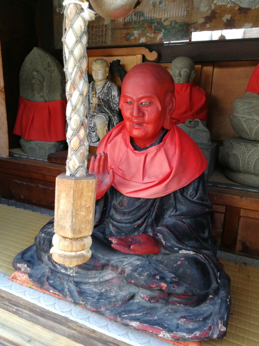 遠目にも真っ赤な顔のおびんずる(賓頭盧)さんが座しているが、撫でるにはちょっと強面すぎる。