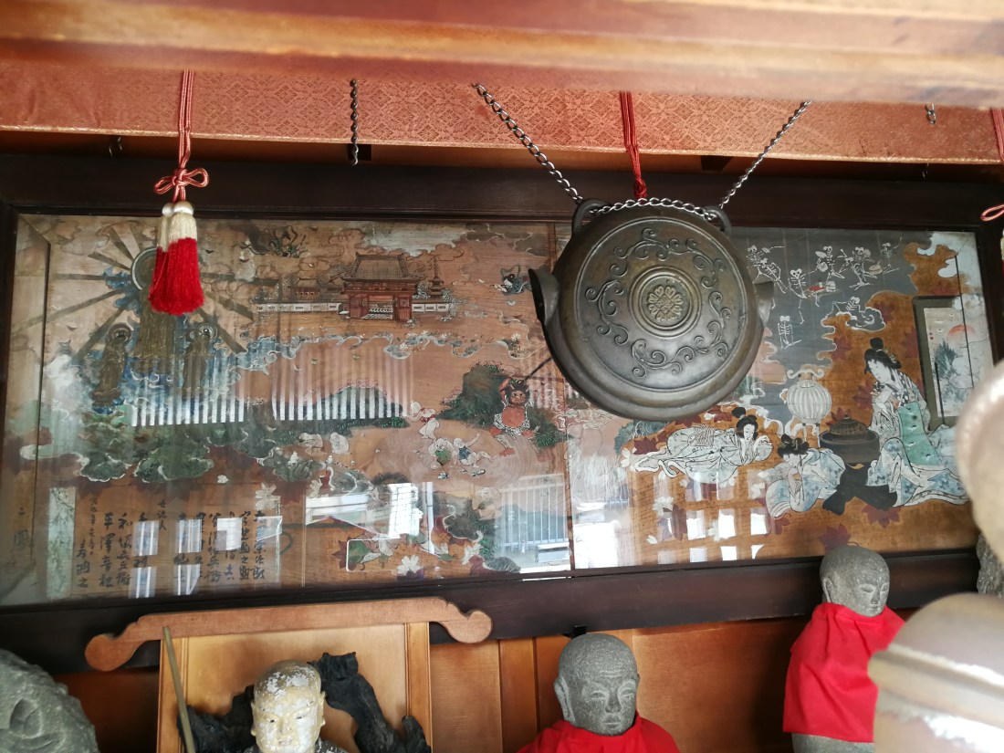 お堂の奥に掲げられた仏画には、鬼らしきものも描かれている。