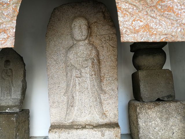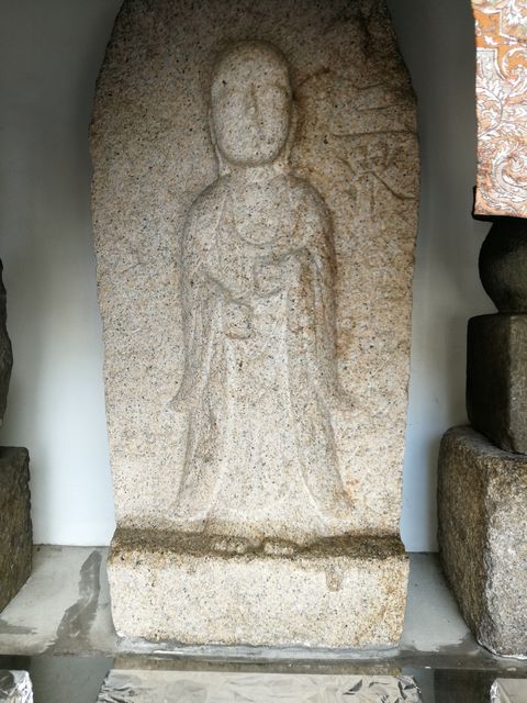 西方寺の西側、民家の前にお堂がある。ちょうどお地蔵さんの掃除をなさっていたところで、珍しく前掛けや頭巾を外した裸体のお地蔵さんの写真を撮ることができた。