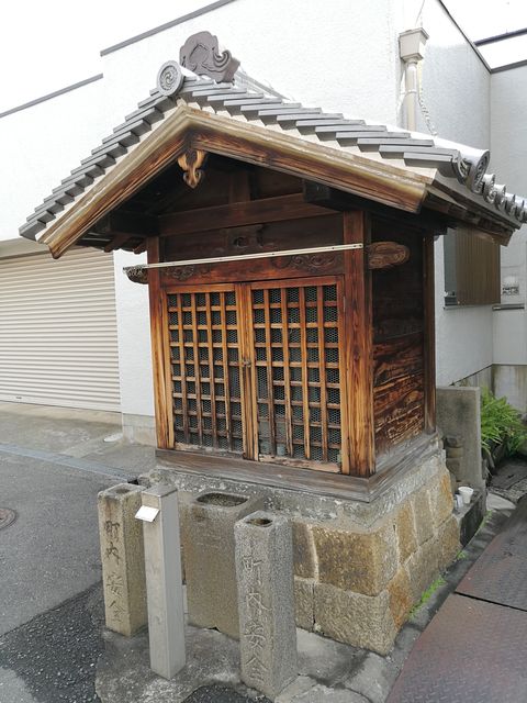 川野歯科の前に、木造瓦葺のお堂が建てられている。