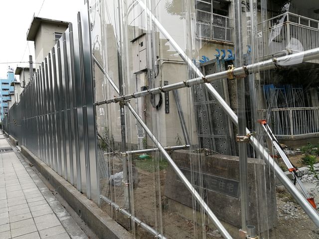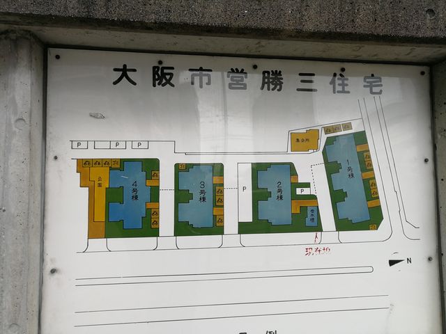 訪ねてみると、天王寺区烏ケ辻2-8にある勝三住宅4号館から9号館は、解体作業に向けて塀で囲まれ、足場を組み始めたところのようで、団地敷地内には入れなかった。上記ブログの写真と私が撮った写真を見比べると、団地の様子が似ており、もしかしてこの辺りだったのかも?と思うが、あくまでも推測の域を出ない。