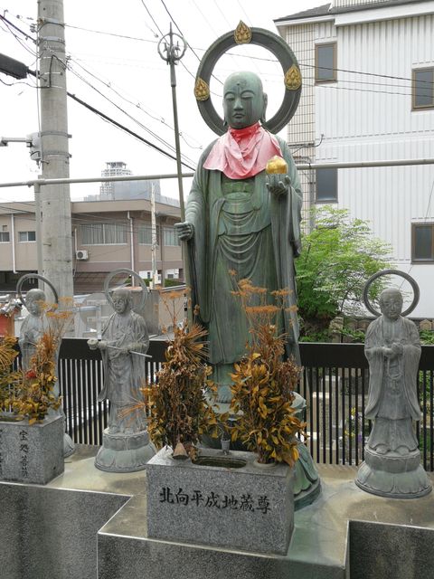 天王寺区085:天王寺区城南寺町5のお地蔵さん(2) 紅玉 天王寺区 2017年9月12日 浄土宗慶恩院 山門入って左側の階段を上ると、建物の屋上(地蔵ケ丘)にお地蔵さんが安置されている。 北向平成地蔵尊 北向地蔵尊の左右には六地蔵尊、右側 左側 水子地蔵 鬼瓦の脇にあるのが、願掛け百体地蔵尊だろうか 共有: X で共有 (新しいウィンドウで開きます) X Facebook で共有 (新しいウィンドウで開きます) Facebook いいね 読み込み中… 関連 公開済み 2017年9月12日