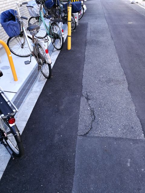 そして診療所北側、電柱付近は自転車置き場になっており、グーグルマップの画像にある跡も、ほとんど上から舗装されており、ほんの一部しか残っていなかった。