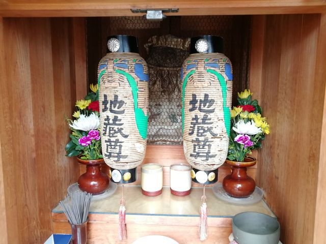 お地蔵さんはネットの奥に安置されているため、あまりはっきり写真を撮ることができなかった。