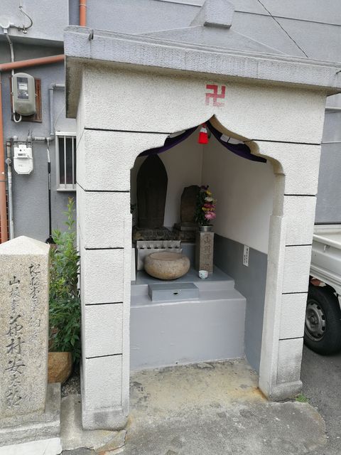 東住吉区067:東住吉区住道矢田4-12のお地蔵さん 紅玉 東住吉区 2017年10月30日 コンクリート造の大きなお堂が建てられている。 中には三体祀られている。 中央は舟形光背の、合掌したお地蔵さん。 右側は風化して石の塊になっている。 左側は頭から肩にかけての輪郭が辛うじて残っている。 共有: X で共有 (新しいウィンドウで開きます) X Facebook で共有 (新しいウィンドウで開きます) Facebook いいね 読み込み中… 関連 公開済み 2017年10月30日
