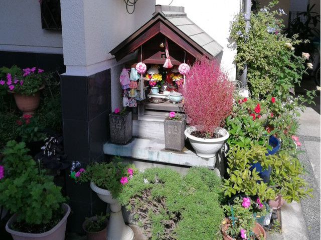 東住吉区073:東住吉区桑津3-24のお地蔵さん 紅玉 東住吉区 2017年11月1日 民家の玄関脇に小さなお堂がある。植木鉢の花と、お堂にかかった飾り付けで華やかだ。 お堂の中には、供花に埋もれるようにお地蔵さんが祀られている。 共有: X で共有 (新しいウィンドウで開きます) X Facebook で共有 (新しいウィンドウで開きます) Facebook いいね 読み込み中… 関連 公開済み 2017年11月1日