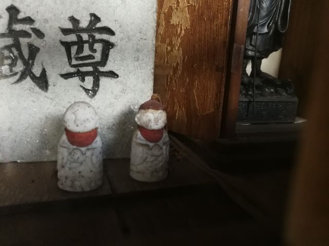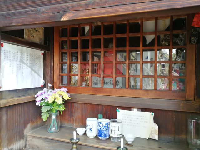 左のお堂の扉を開けると、奥にガラスの格子戸がはめられている。その奥に、地蔵尊ほか仏像が祀られている。
