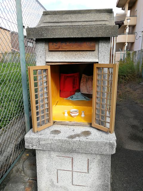 西成区098:西成区出城3-3のお地蔵さん 紅玉 西成区 2017年11月14日 更地の一角にお堂が残っていた。 お地蔵さんの名前は、延命地蔵尊。 お地蔵さんの写真を撮っていると、ご近所の方が、高野槙をお供えしに持ってこられた。 左側は丸っこい顔が可愛らしい。 右側は細面の顔。 手前は卵型。 共有: X で共有 (新しいウィンドウで開きます) X Facebook で共有 (新しいウィンドウで開きます) Facebook いいね 読み込み中… 関連 公開済み 2017年11月14日