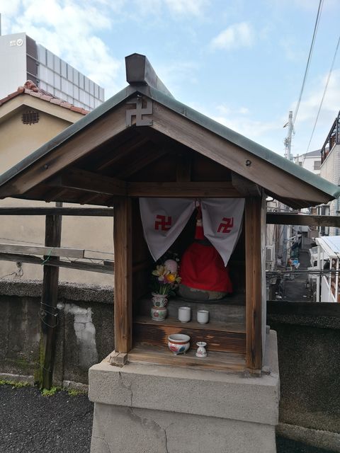 中央区018:中央区谷町7-6のお地蔵さん 紅玉 中央区 2018年1月23日 表通りから伸びる二本の路地が、奥でコの字型につながっている。南側の突き当りには玉勝大明神と榎大明神が、北側の突き当りにはお地蔵さんが祀られている。 お堂の屋根が前にせり出しているのが特徴的。 穏やかな顔立ちのお地蔵さんだ。 共有: X で共有 (新しいウィンドウで開きます) X Facebook で共有 (新しいウィンドウで開きます) Facebook いいね 読み込み中… 関連 公開済み 2018年1月23日