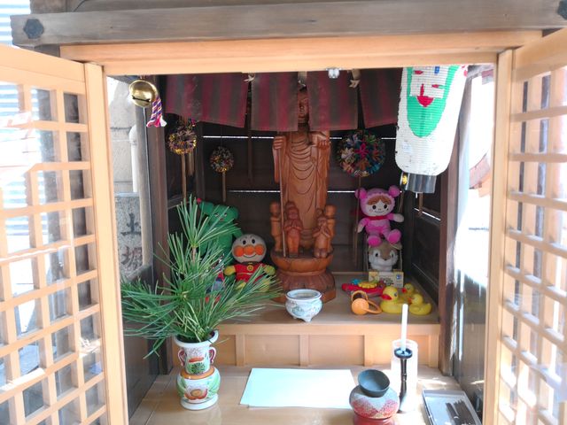 西区035:西区土佐堀1-5のお地蔵さん 紅玉 西区 2018年4月24日 土佐堀通に面した高野寺 本堂に上がる階段左側 この地蔵堂には名前は掲げられていなかった。 階段右側 一番手前に立像のお地蔵さん お堂の側面に水地蔵尊と書かれた板が掲げられていた。 共有: X で共有 (新しいウィンドウで開きます) X Facebook で共有 (新しいウィンドウで開きます) Facebook いいね 読み込み中… 関連 公開済み 2018年4月24日