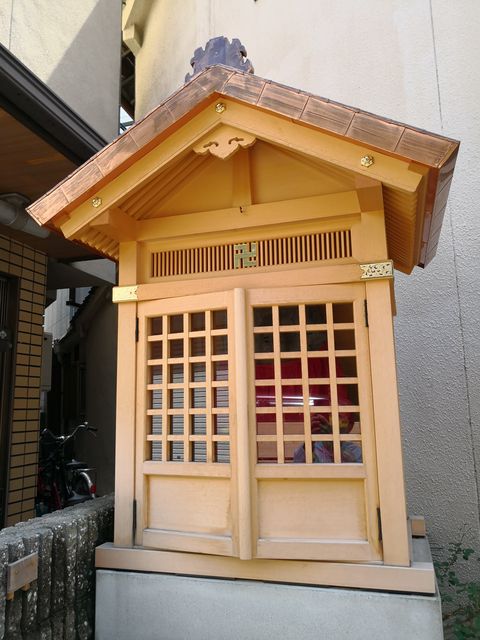 こちらのブログの情報によると、2015年11月当時は、エメラルド色の屋根に赤いお堂だった。