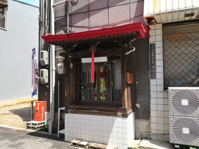 中央大通りからすぐの角地にお堂が建てられている。