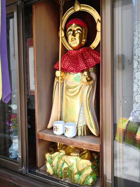 中央には金ぴかのお地蔵さんの名前は、立江地蔵尊。錫杖と宝珠を手にしている。