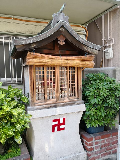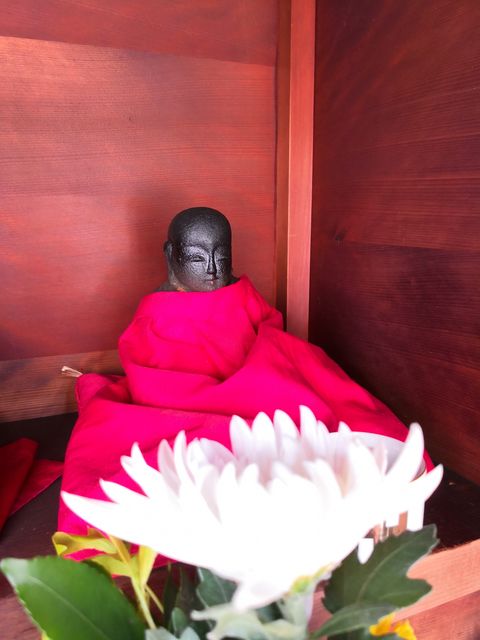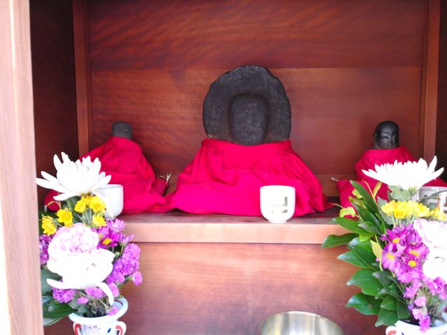 西区049:西区九条南4-13のお地蔵さん 紅玉 西区 2018年5月11日 通りの西北角、ハイツサキノの入り口付近にお堂がある。 中には三体祀られている。 中央は頭だけ? 風化していて表情はわからない。 右側は坐像 左側も風化している。 西区.comの地蔵一覧によれば、このお地蔵さんの名前は満願地蔵尊。 共有: X で共有 (新しいウィンドウで開きます) X Facebook で共有 (新しいウィンドウで開きます) Facebook いいね 読み込み中… 関連 公開済み 2018年5月11日