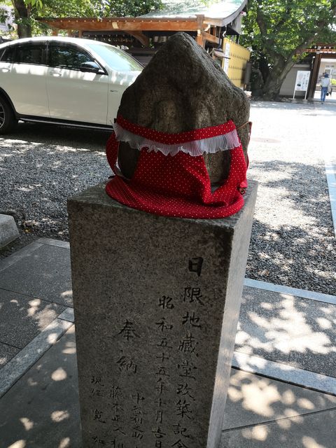 日限地蔵堂前のお百度石の上に祀られているのは両面地蔵尊。表側