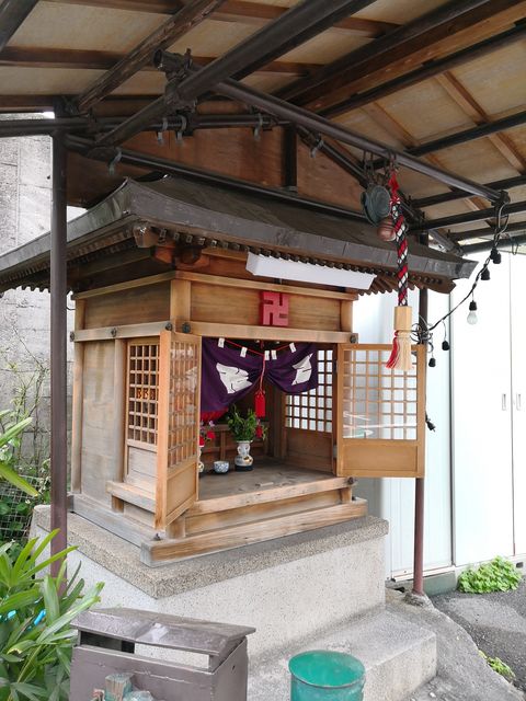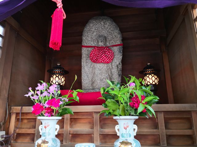 こちらのブログによると、2015年11月当時、お堂のに掛かっている紫色の卍紋入の幕には波除地蔵尊と書かれている。