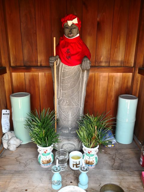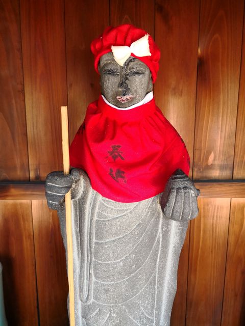 中には立像のお地蔵さん。右手の錫杖は仮のものだろうか?