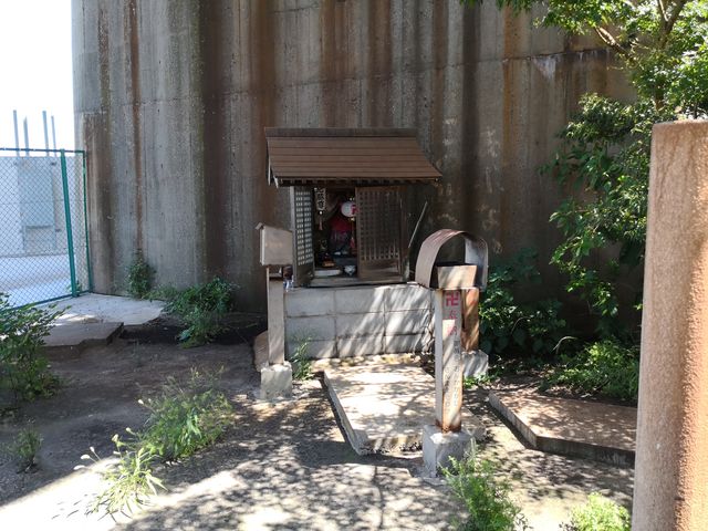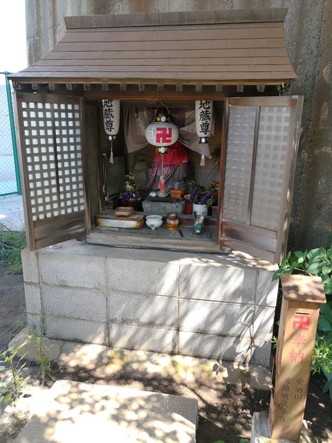 環状線の高架橋の真下に旧町名継承碑 南安治川通三丁目があり、その石碑の奥にお堂がある。お堂には名前はなかったが、賽銭箱には安治川波除地蔵尊と書かれている。
