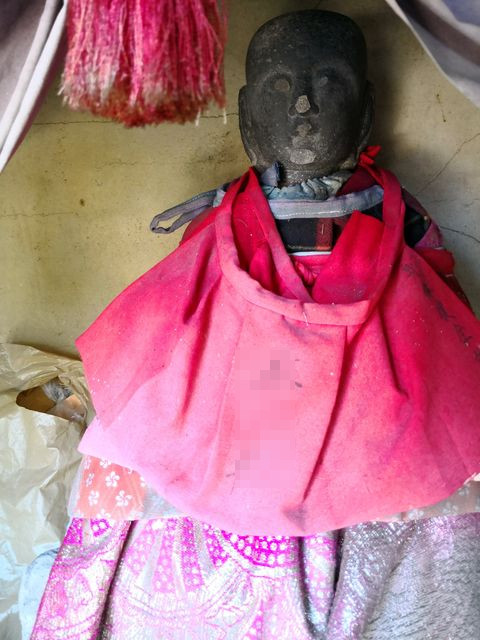 お地蔵さんのお顔も、鼻から口にかけてつぶれていた。