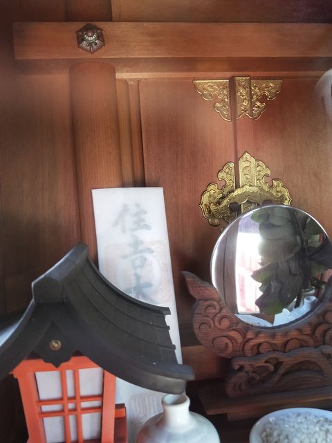 お堂の中には、厨子と鏡、住吉大社のお札が納められている。