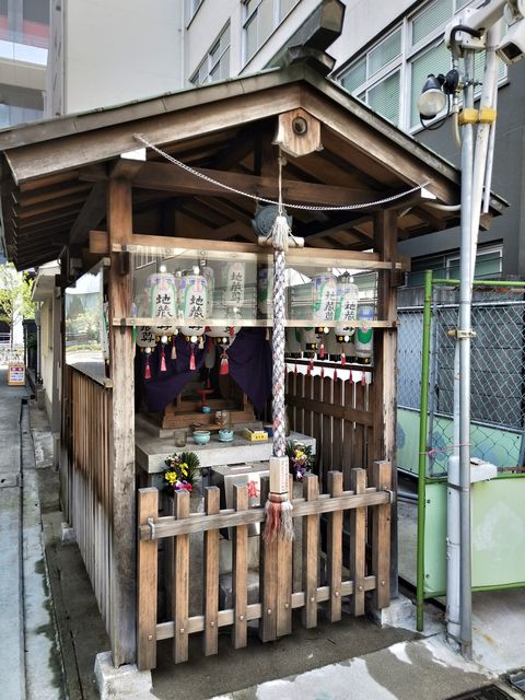 ヨドバシカメラの北側の一角に、大きな覆屋とお堂がある。