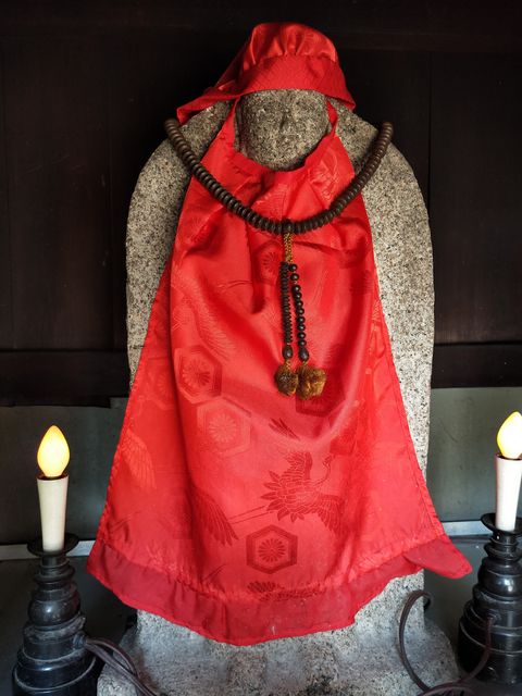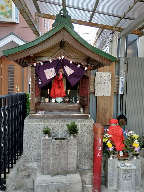 こちらのブログによると、2016年7月の画像では、お堂の暖簾に「延命地蔵尊」と書かれている。
