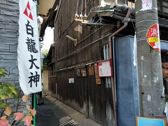 路地の奥に、白龍大神と並んで延命地蔵尊が祀られている。