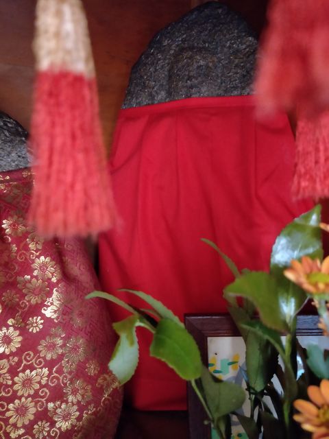 西から入る場合は、白龍大神の幟が出ている細い道を入って、正面にお堂がある。案内板には「地蔵菩薩 観音菩薩 堂」と書かれているので、左右のどちらかは観音菩薩だったのか。