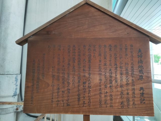 北区047:北区天神橋4-7のお地蔵さん 紅玉 北区 2019年6月1日 大阪地下鉄扇町駅4号出入口横に夫婦橋地蔵尊が祀られている。 夫婦橋地蔵尊 再建記の立札 高速道路下にある横断歩道横には、夫婦橋の歴史を記すプレートがある。 大きい地図・ルート検索 ( powered by ゼンリン地図 いつもNAVI ) 共有: X で共有 (新しいウィンドウで開きます) X Facebook で共有 (新しいウィンドウで開きます) Facebook いいね 読み込み中… 関連 公開済み 2019年6月1日