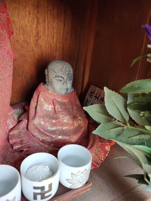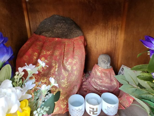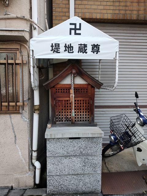 福島区001:福島区野田3-6のお地蔵さん 紅玉 福島区 2019年7月30日 雨除けのテントの下に、お堂が置かれている。お地蔵さんの名前は堤地蔵尊。 右上にご真言が掲げられている。 二体祀られている。 左側は風化していて、表情はわからない。 右側の仏像は坐像。 共有: X で共有 (新しいウィンドウで開きます) X Facebook で共有 (新しいウィンドウで開きます) Facebook いいね 読み込み中… 関連 公開済み 2019年7月30日