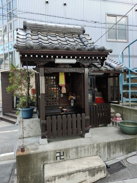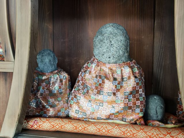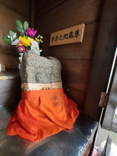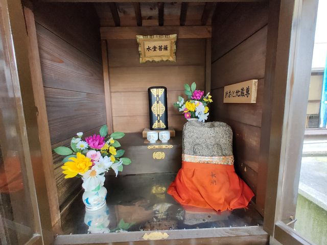 向かって右側のお堂には、水堂菩薩とめおと地蔵尊が祀られている。