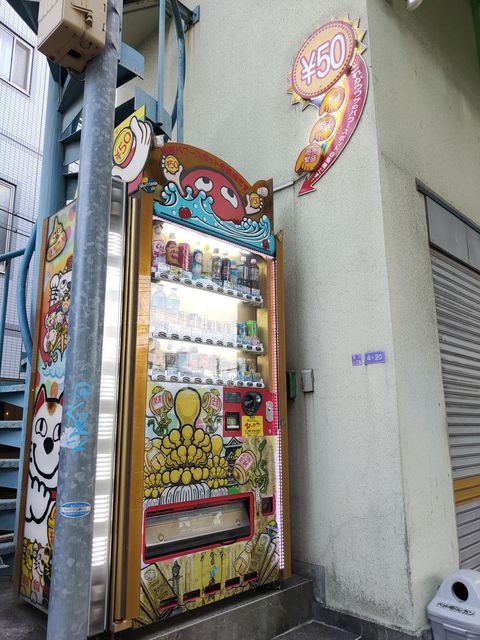 お堂に隣接している自販機、ド派手なデザインに加えて、「金運、開運、商売繁盛 これがウワサのパワースポット自販機だす! 」こちらのお地蔵さん、よっぽど霊験あらたかなのだろうか?