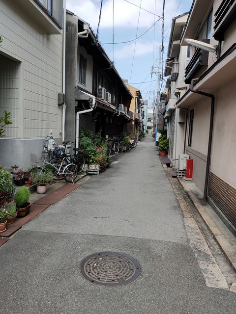 写真の左側が福島区野田2-20、右側が2-21。この通りの2-20側に、 ななとこまいりの地図では、「数年前までおじぞうさんがまつられていたが、引越して今は空き家」と書かれている。通りを二往復してみたが、その空き家の地蔵堂は見つからなかった。