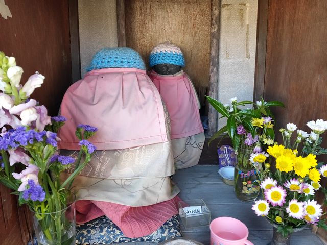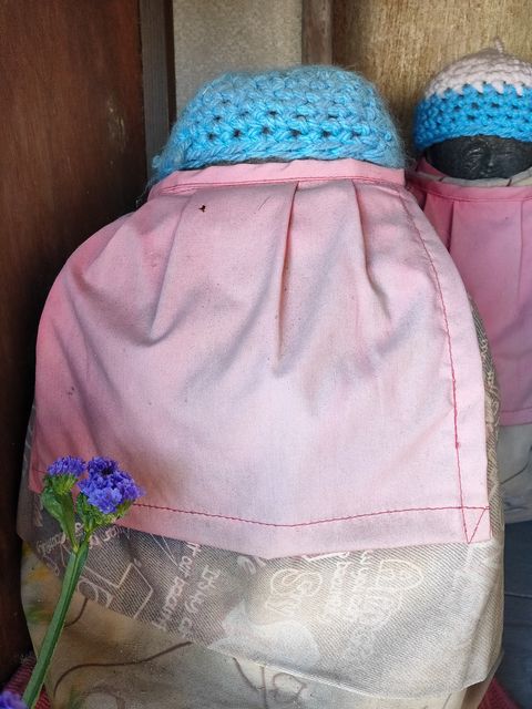 すっかり冬支度のお地蔵さんが二体祀られている。