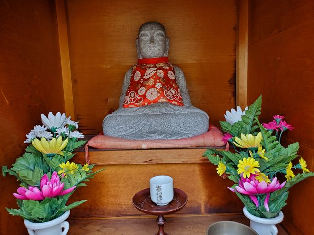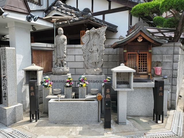 東住吉区089:東住吉区東田辺2-4のお地蔵さん 紅玉 東住吉区 2020年8月13日 真言宗白雲山不動寺西南角に、地蔵尊と不動明王が祀られている。 左端は子安水子地蔵尊 水掛不動明王 お堂の扉の上には、日限地蔵尊の名前と、ご真言が書かれていた。 こちらの地蔵さんの名前は表記なし。 共有: X で共有 (新しいウィンドウで開きます) X Facebook で共有 (新しいウィンドウで開きます) Facebook いいね 読み込み中… 関連 公開済み 2020年8月13日